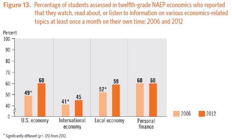 Young students are increasingly interested in the economy, yet their levels of understanding are not increasing at the same rate, or at all. It is encouraging that students acknowledge their existing courses as helpful, but progress needs to be made to show improvements in their proficiency as they become more engaged in an increasingly interconnected global economy.
